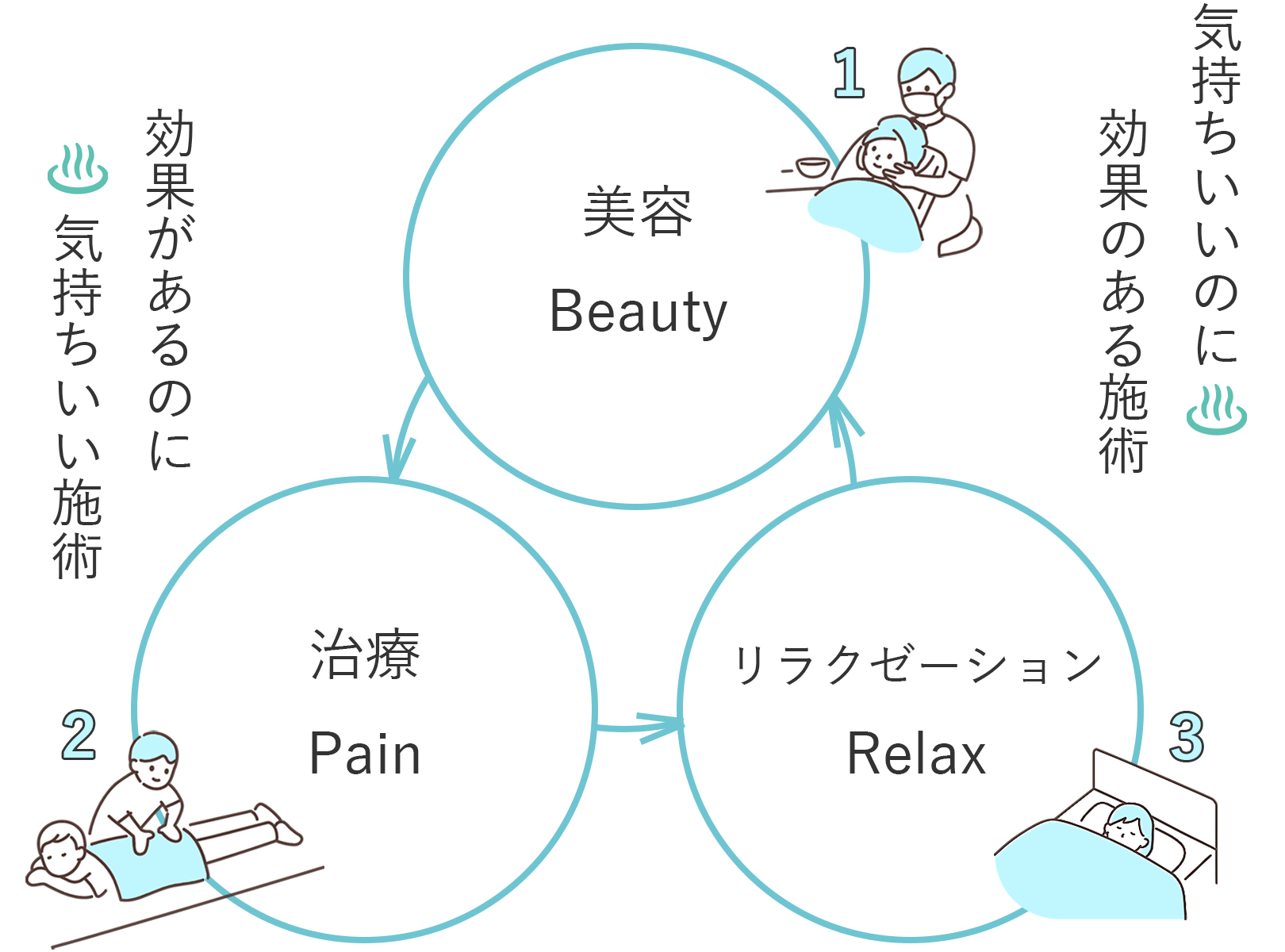 当サロンの「3つ」の約束 HARIHARIでは 1.持続する美しさ それら全てを 1.美容 を同時に叶えます
